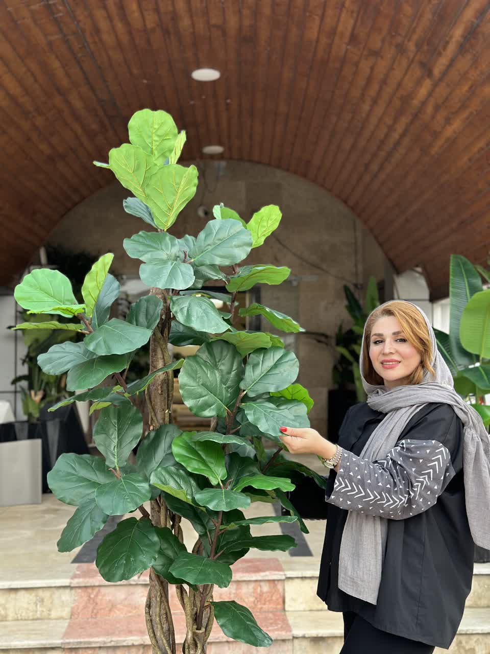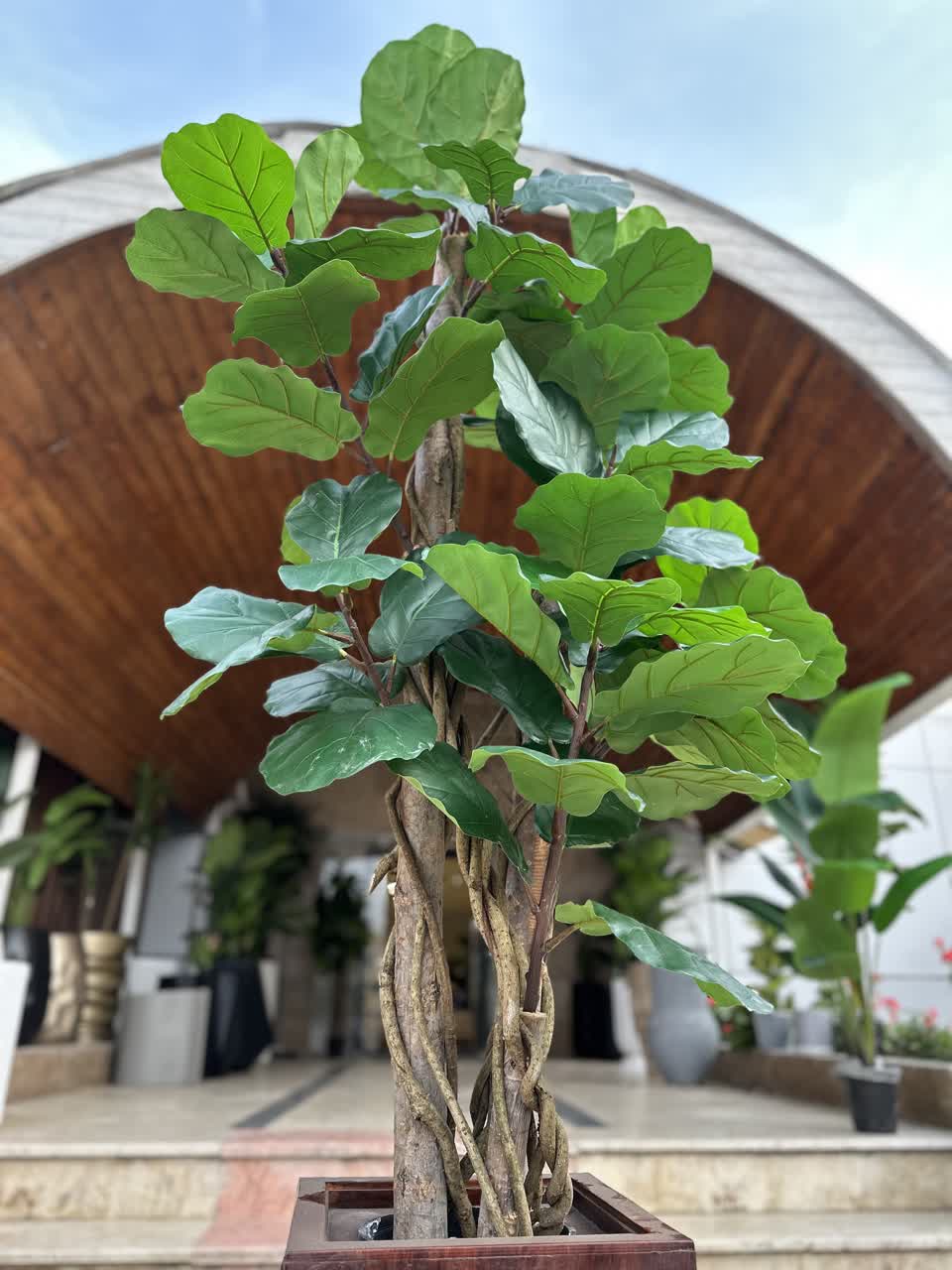 - درختچه لیراتا مصنوعی با تنه طبیعی، انتخابی ایدهآل برای کسانی است که به دنبال زیبایی ماندگار گیاه Ficus lyrata (فیکوس لیراتا) هستند اما زمان یا شرایط نگهداری از گیاه زنده را ندارند. آنچه این محصول را از سایر مدلهای مصنوعی متمایز میکند، تنه چوبی با بافت و رنگ طبیعی آن است که بالاترین سطح از واقعگرایی را در دکوراسیون داخلی ایجاد میکند. این درختچه زینتی، با برگهای بزرگ، پهن و سبز پررنگ خود، طراوت و شکوه خاصی به دکوراسیون منزل، دفتر کار، لابی هتلها و فضاهای تجاری میبخشد.